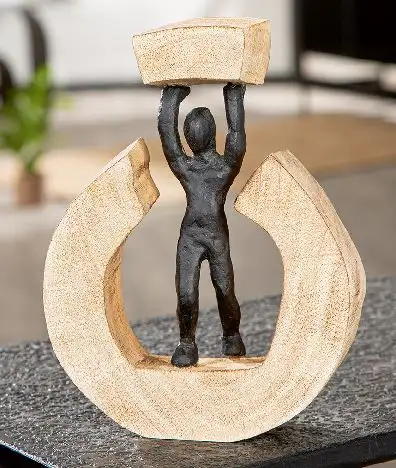 Beeld – Geloof in je kracht en dan is alles mogelijk – Mango hout – Aluminium – Zwart – Hoogte 22 cm