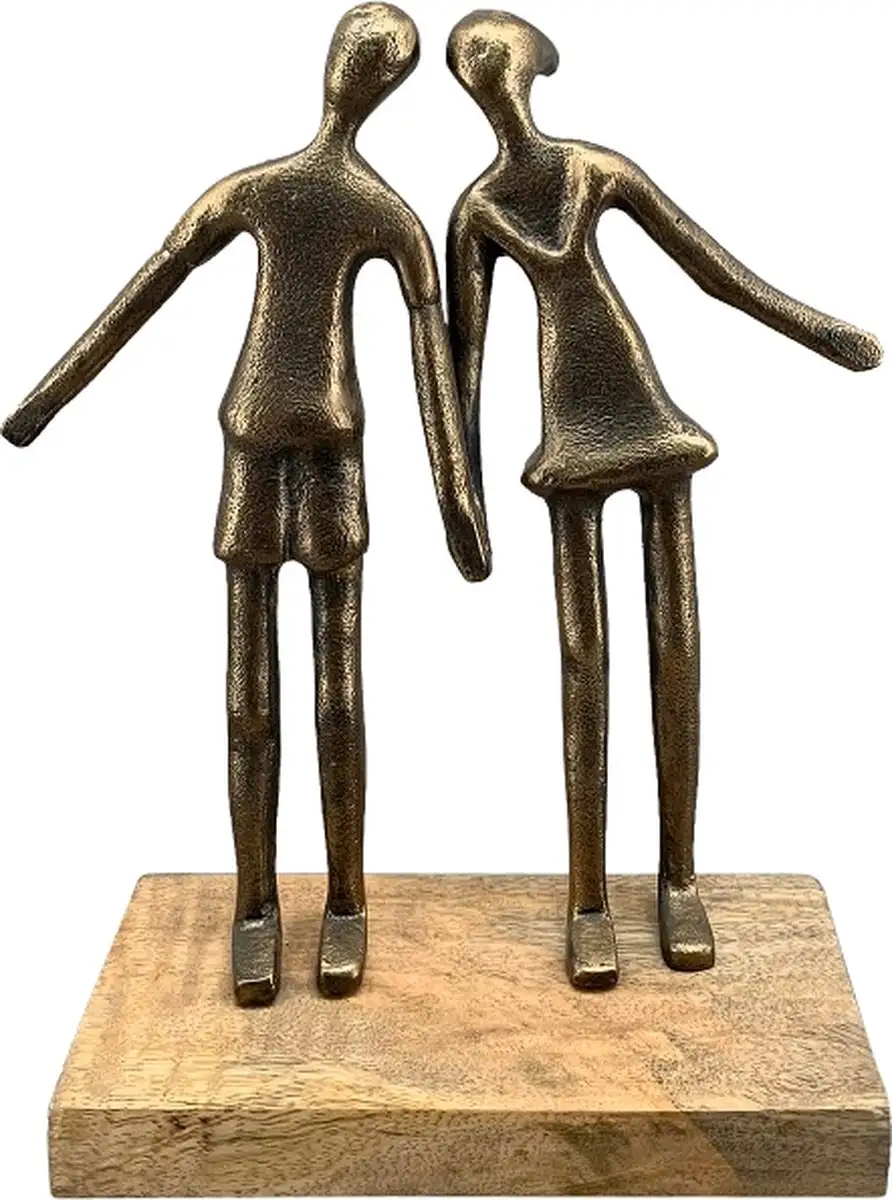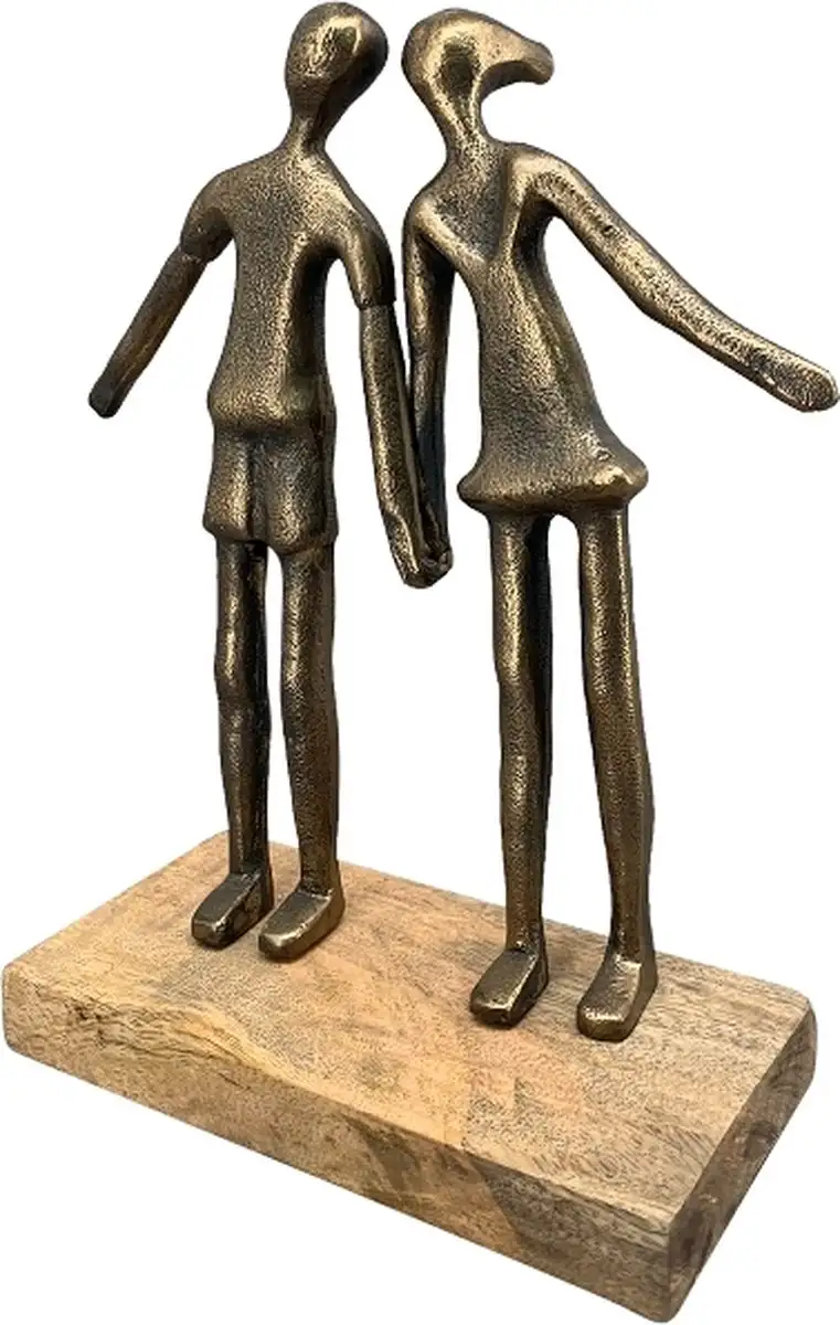 Beeld Happy Love – Koppel Hand in Hand – Aluminium & Mangohout – Bronskleur – 20x8x25 cm