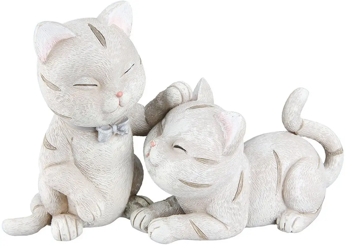 Breng leven en speelsheid in je interieur met dit schattige beeld van spelende kittens. De zachte crème- en wittinten geven het beeld een warme en vriendelijke uitstraling. Gemaakt van duurzaam polyresin en met oog voor detail is dit decoratieve beeldje perfect voor kattenliefhebbers en een sfeervolle toevoeging aan elke ruimte.