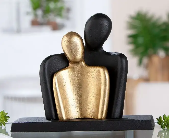 Breng romantiek en elegantie samen in één kunstwerk met dit stijlvolle beeld van een verliefd koppel, uitgevoerd in een luxe combinatie van zwart en goudkleurig aluminium. Met een hoogte van 19 cm is dit beeld een subtiele maar opvallende toevoeging aan elk interieur. Het symboliseert liefde, verbondenheid en tederheid tussen twee mensen.