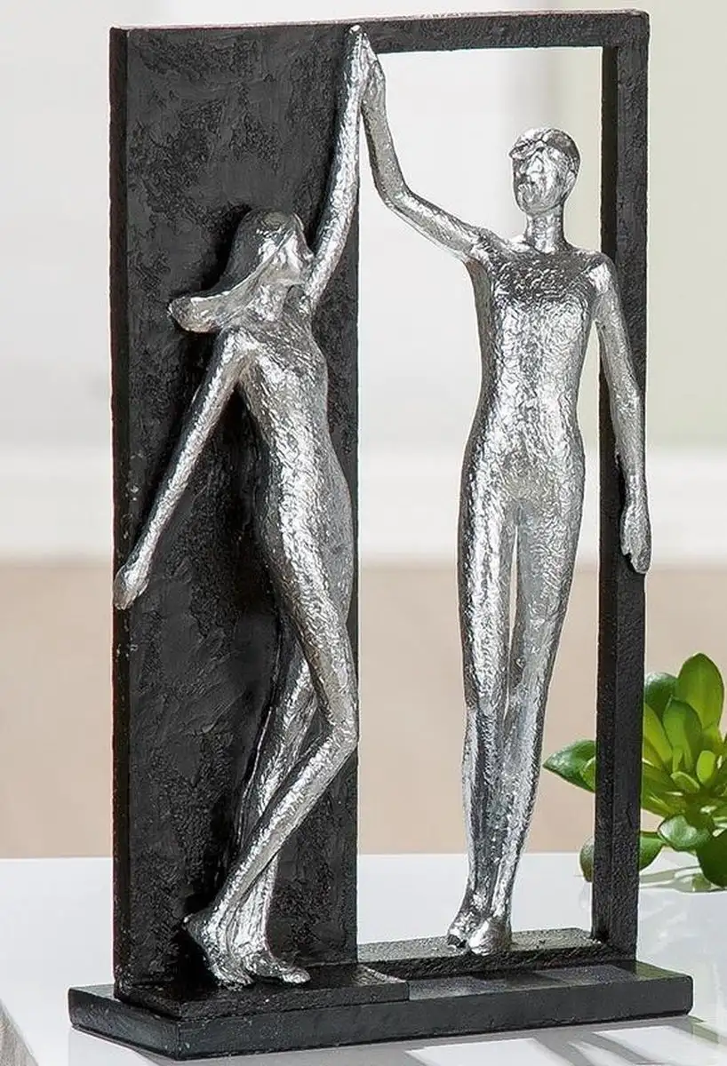 Voeg een vleugje romantiek en elegantie toe aan je interieur met dit stijlvolle beeld van een liefdespaar. Het moderne ontwerp in zilver en zwart straalt verbondenheid en harmonie uit, perfect als symbool van liefde en samenzijn. Gemaakt van duurzaam polyresin, is dit beeldje zowel stevig als verfijnd afgewerkt.