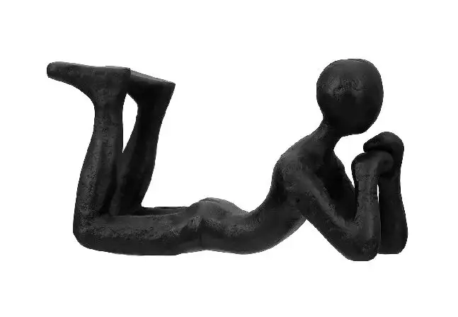 Voeg een subtiel kunstzinnig accent toe aan je interieur met dit compacte beeld van een denkende persoon liggend op de buik. Gemaakt van stijlvol zwart aluminium en met een hoogte van 10 cm, straalt dit beeld rust, reflectie en moderne eenvoud uit. Het is een minimalistisch kunstobject dat uitnodigt tot overdenking en perfect past op een boekenplank, bureau of bijzettafel.