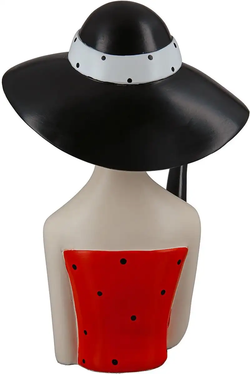 Beeld Vrouw met Hoed – Rood/Zwart – Polyresin – 19x29x15 cm