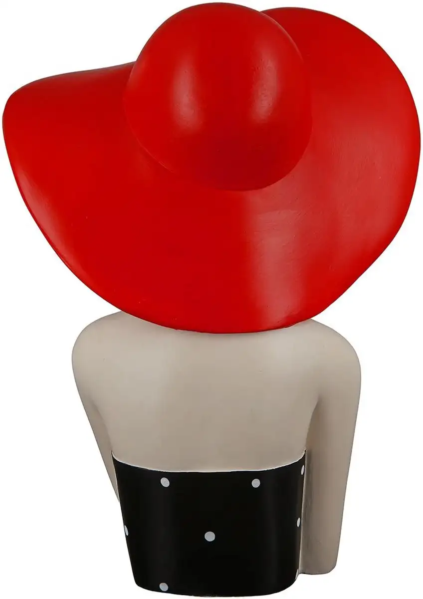 Beeld Vrouw met Rode Hoed – Rood/Zwart – Polyresin – 20x27x14 cm