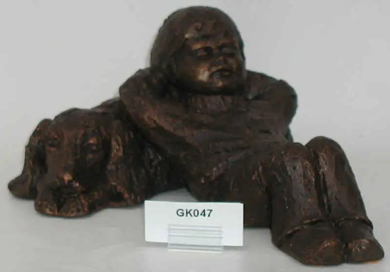 Beeldje Jongen ligt met hond