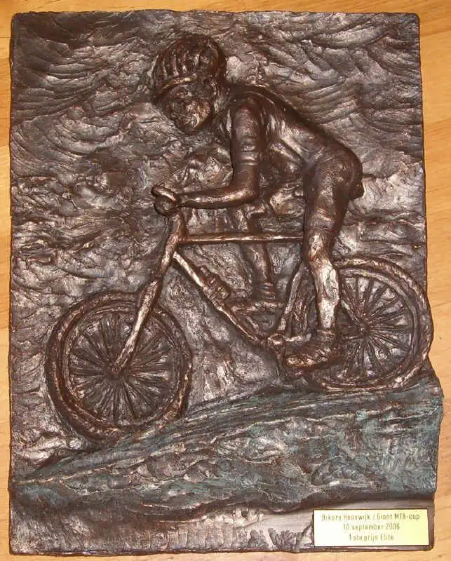 Beeldje Mountainbiker op plaket