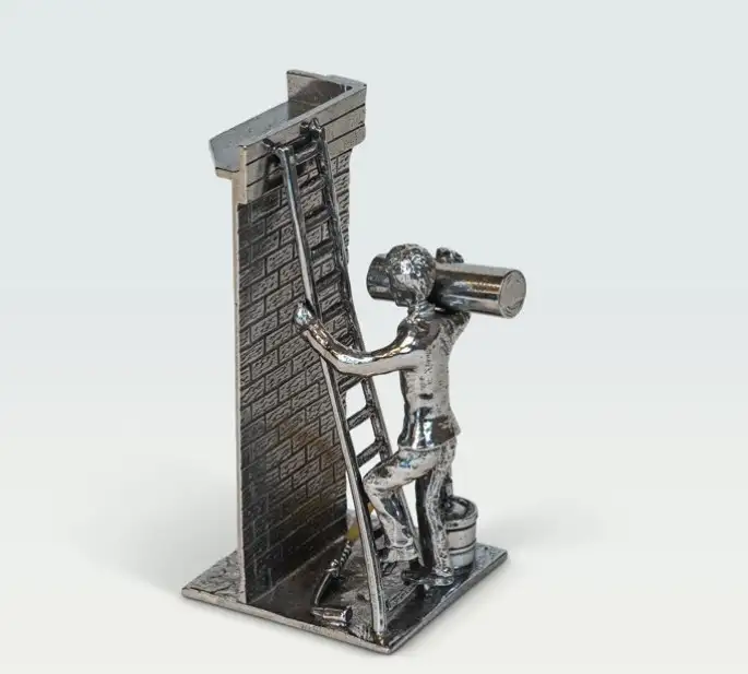 Tinnen sculptuur van het ambacht “Dakdekker”, in prachtige opstelling.