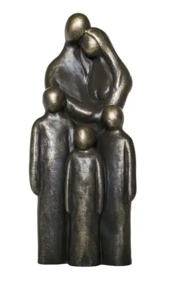 Alle familie beeldjes zijn gemaakt van steenhars, steenhars is een mengsel van steengruis met hars. Het voelt qua gewicht en uitstraling aan als steen. Na het gietproces worden de familie beelden voorzien van een kleur of verbronsd.