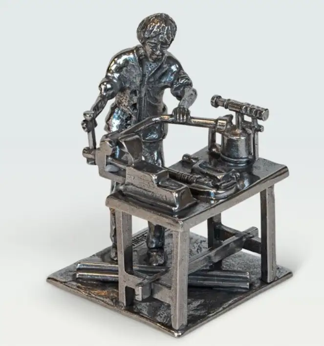 Loodgieter beeldje tin werkbank