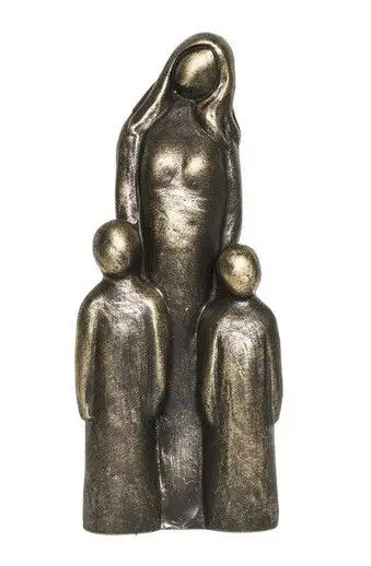 Alle familie beeldjes zijn gemaakt van steenhars, steenhars is een mengsel van steengruis met hars. Het voelt qua gewicht en uitstraling aan als steen. Na het gietproces worden de familie beelden voorzien van een kleur of verbronsd.