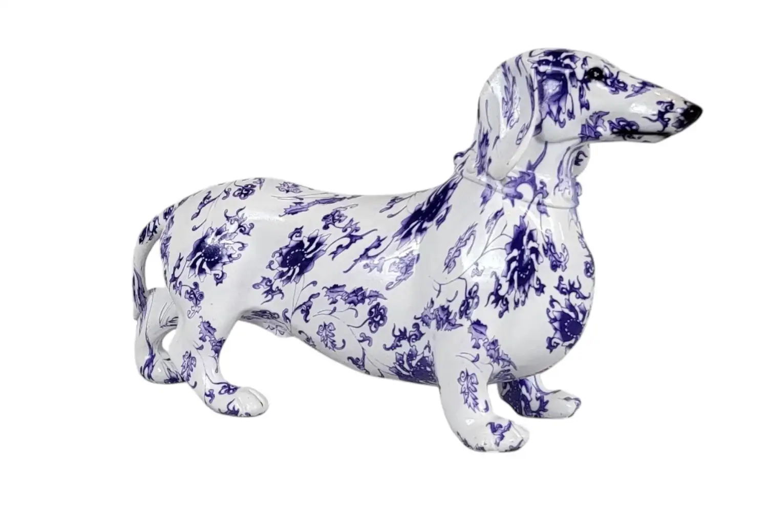 polyresin beeld ballon teckel delfts blauw – hond tekkel – 3 maten woondecoratie